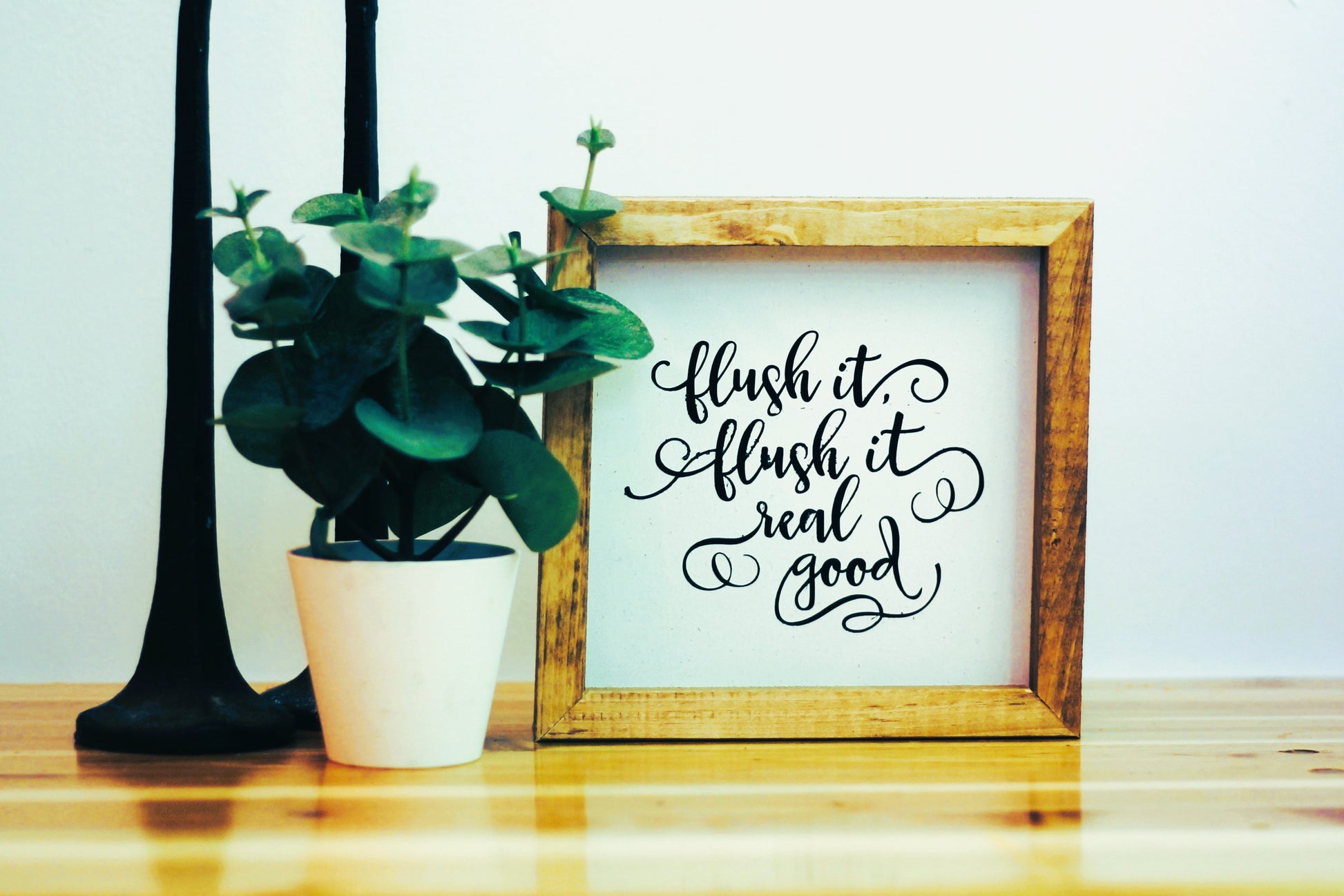 A free standing or hanging wooden, hand-painted home decor sign. It will add the perfect touch to your bathroom decor. This sign can stand freely on your tabletop, shelf or hang from your wall. (Hanging hardware sold separately).